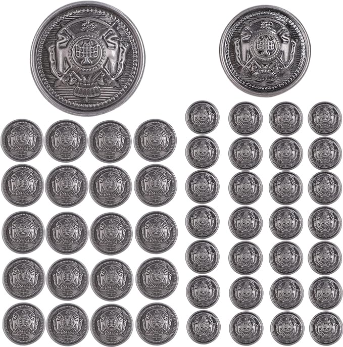 ルボナリエ メタルボタン アンティーク レトロ コート用ボタン ジャケット ブレザー アクセサリー 20mm 15mm (シルバー 60個)