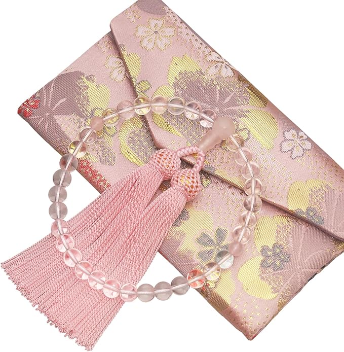 通雲念珠屋 数珠 女性用 本水晶 星月菩提樹 念珠 葬式 葬儀 お通夜 略式 じゅず 数珠袋付き すべての宗派で使える (本水晶/ピング)