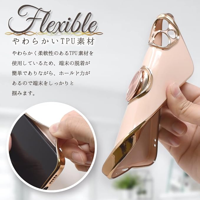 【背面にリング付き】デスクワークや動画視聴に便利、指を通せば落下防止に