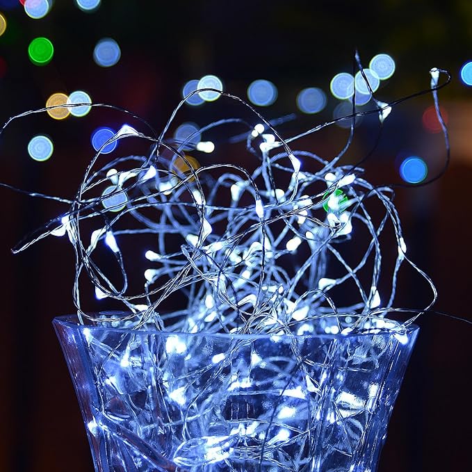 Nexvolix LEDストリングライト 銅線ワイヤー・イルミネーションライト8種類の点灯モード 簡易DIY クリスマス/結婚式/パーティ/学園祭デコレーション クリスマス電飾/室内飾り (ホワイト, 10メートル)