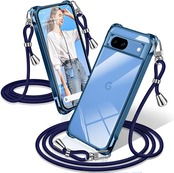 Google Pixel 8a ケース クリア ショルダー 耐衝撃 ピクセル8a カバー 透明 スマホケース 織りストラップ付き 肩がけ 首掛け 紐付き カバー 縄掛け シングルショルダーロープ 斜めがけ 調節可能なショルダー クロスボディ 多目的キャリー ファッションデザイン TPUスマホ 柔軟 軽 薄 (ブルー)
