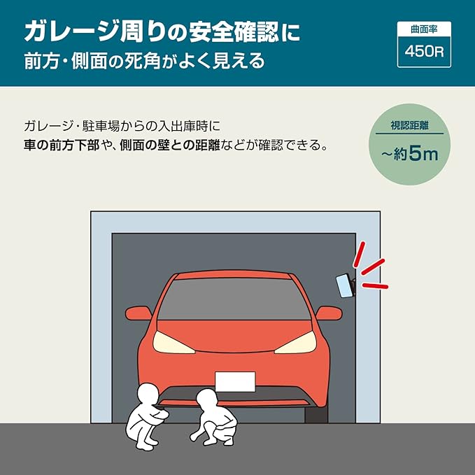 ◆ガレージ周りの安全確認に◆前方・側面の死角がよく見える