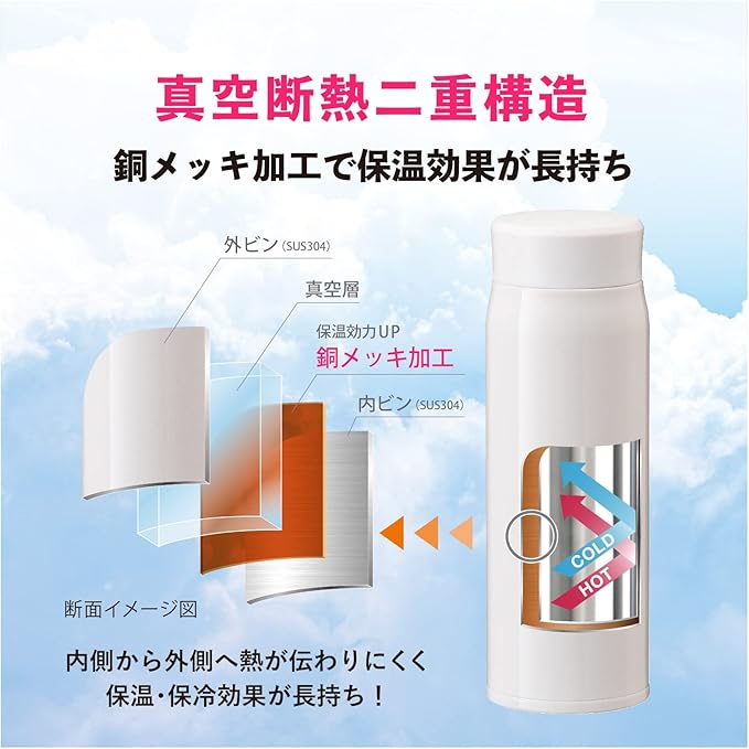 国内最軽量のArilist【エアリスト】ふんわり新色の超軽量マグボトル!究極の軽さで持ち運びに便利!内面に施したクリーンミラー加工で飲み物のニオイ移りせず、着色汚れが非常につきにくいのでお手入れがとても楽に済みます!氷止め付き飲み口!真空2重構造で保温保冷両用! 是非お手に取ってみてください。