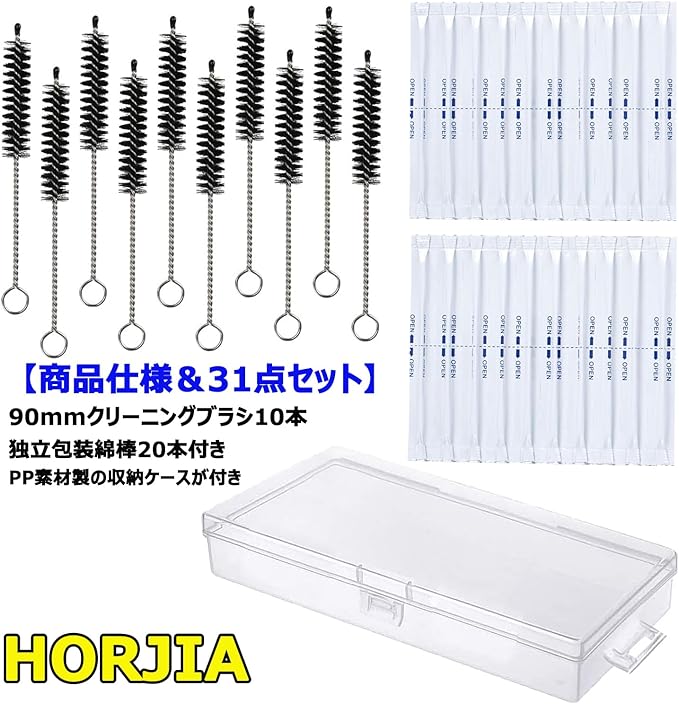 ✅【商品仕様&31点セット】10本セット、長さ:約90mm、直径:8.5mm、ブラシ部分の長さ:約36mm。綿棒20本とPP素材製の収納ケース1個が付属。