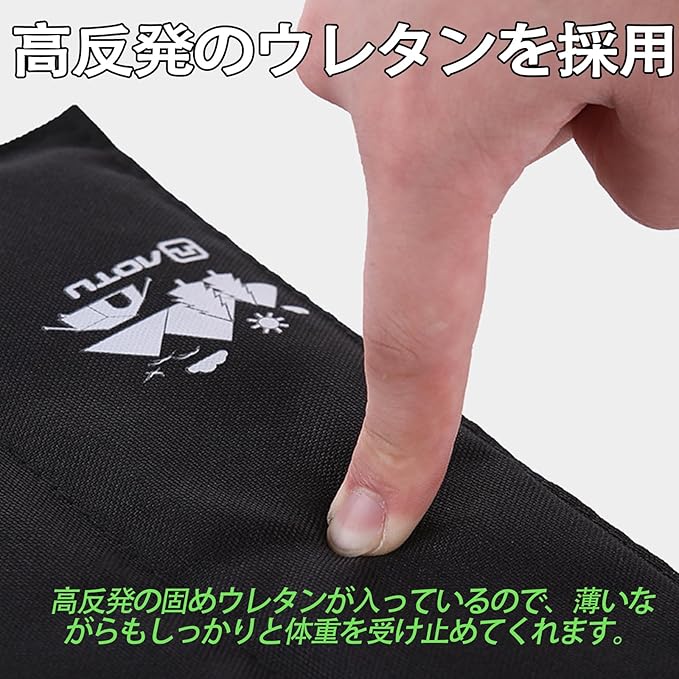 ◎水洗いOKなナイロン製。長時間座っても疲れにくい◎ 椅子や地面に敷くだけで、長時間座ってもお尻が痛くなりにくい携帯用クッションです。 折りたたんで取っ手のゴムバンドを止めるだけで簡単に収納できます。 さらに、水が沁み込みにくいナイロン素材を使用しており、水洗いも可能です。 高反発の固めウレタンが入っているので、薄いながらもしっかりと体重を受け止めてくれます。 柔らかいクッションは一見座り心地が良いようですが、長時間座るとお尻の骨が当たって痛くなって しまうこともあるので、高反発クッションがおすすめです。