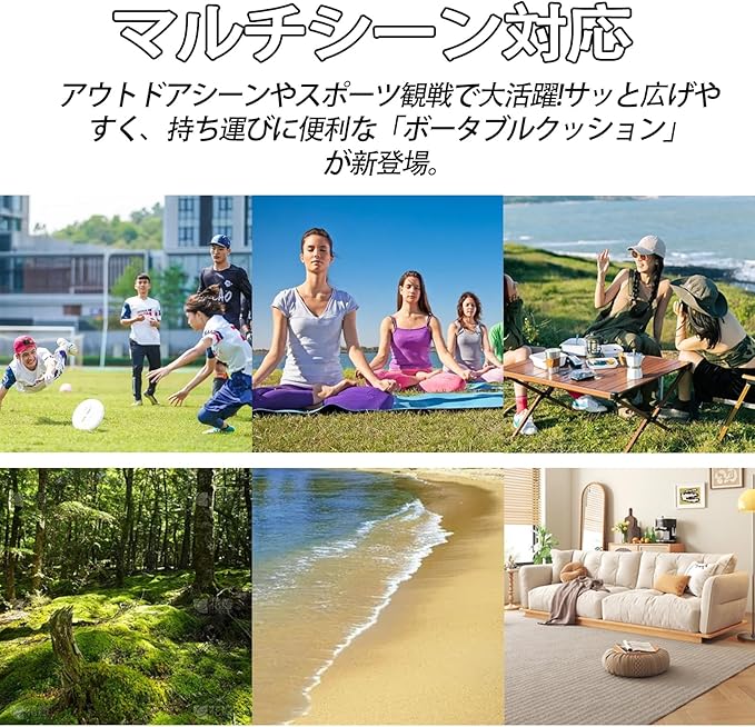 軽くて、汚れに強い、コンパクトな一人用クッション。 キャンプやアウトドア、お散歩や公園で、 スポーツ観戦、フェス、運動会、イベントの待ち時間など さまざまなシーンで大活躍まちがいなし!