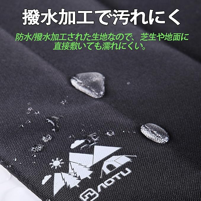 ◎うれしい撥水性をプラス◎ 表面に水滴などをサッと弾く撥水加工が施されています。そのため、芝生や地面に直接敷いても安心です。 ちょっと濡れても、すぐに拭き取れば大丈夫です。 (濡れた地面で長時間使用されると水が染みる可能性がございますのでご注意ください) また、こちらの商品は手洗いも可能です。 (洗濯機のご使用はお勧めしませんが、自己責任で使用される際は手洗いコースやおしゃれ着コースなどをご使用ください)