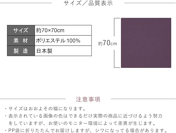 [あめてまり] ちりめん 風呂敷 フジ【2枚】70cm 二巾 無地 日本製 ポリエステル 一越無地 さざら織 シワにならない 大きい お稽古バッグ エコバッグ 瓶包み クロス 目隠し ギフト お土産 女性 男性 (フジ)