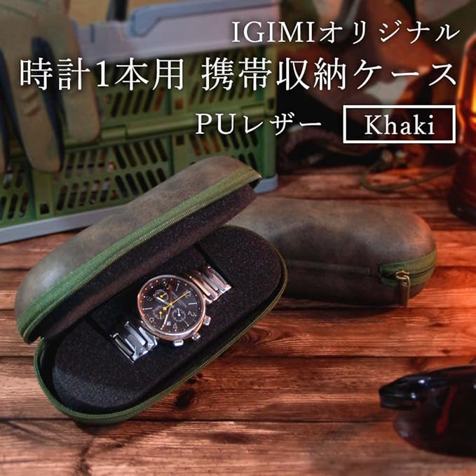 IGIMI(イギミ) 腕時計収納 携帯用 1本収納 ウォッチケース カーキ 旅行・出張の持ち運びに便利 BI324197K