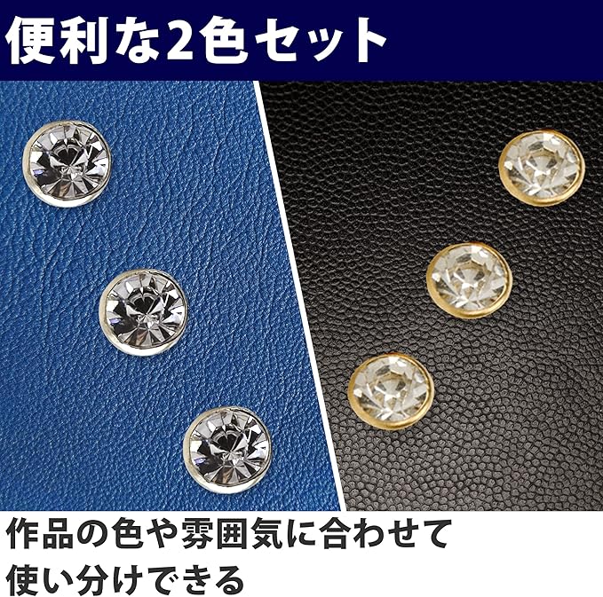 たっぷり使える合計200個セット:ゴールドとシルバーのリベットがそれぞれ100個ずつ含まれた、合計200個の大容量セットとなっています。カラーを選べるので、作品に合わせて使い分けることもできます。