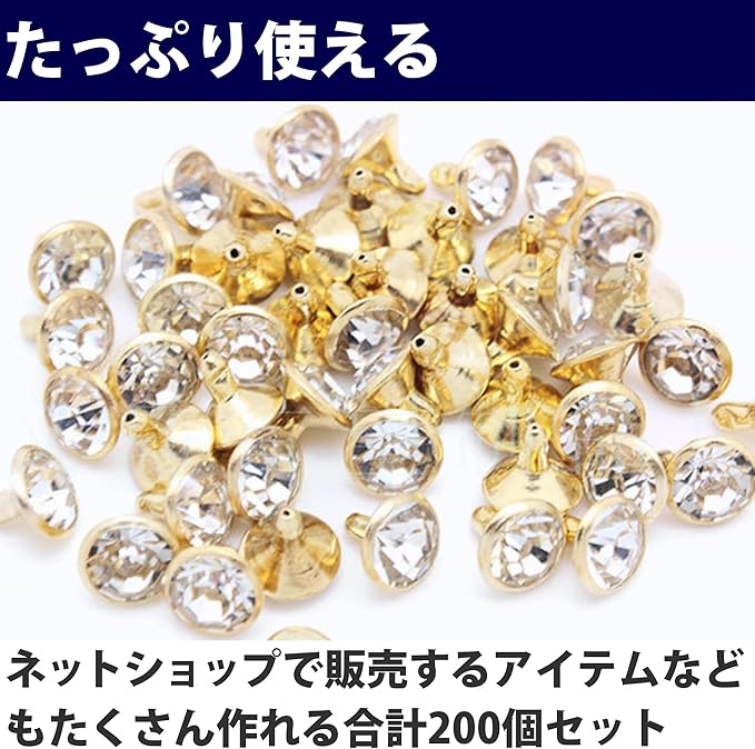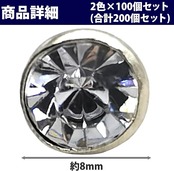 セット内容:各色 100個セット(合計200個セット) サイズ:約8mm 素材:鉄、ガラス カラー:ゴールド、シルバー ※モニターの環境等により、色の見え方に若干差が生じる場合がございます。