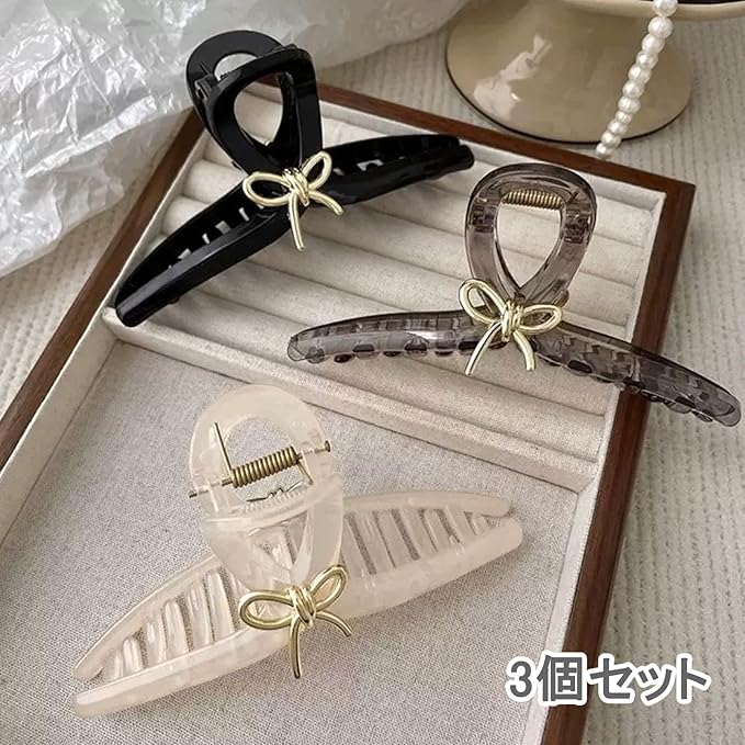 ヘアクリップ 大きめ しっかりとまる 2個セット、ヘアアクセサリー、大人可愛い、ヘアキャッチ、おしゃれ、髪留めクリップ (蝶ネクタイ)