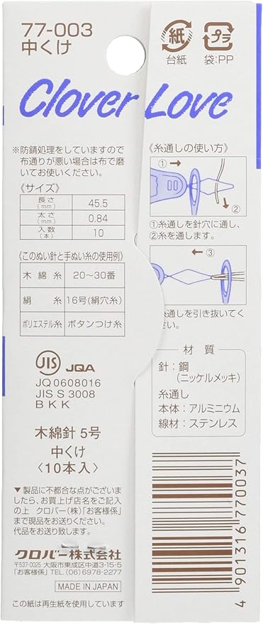 クロバー(Clover) 手縫針 絆 CL 中くけ 77-003