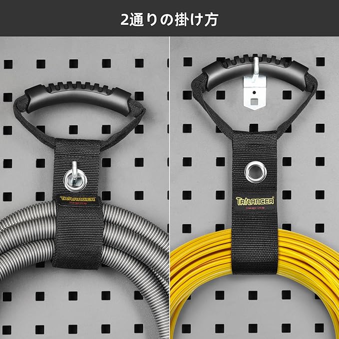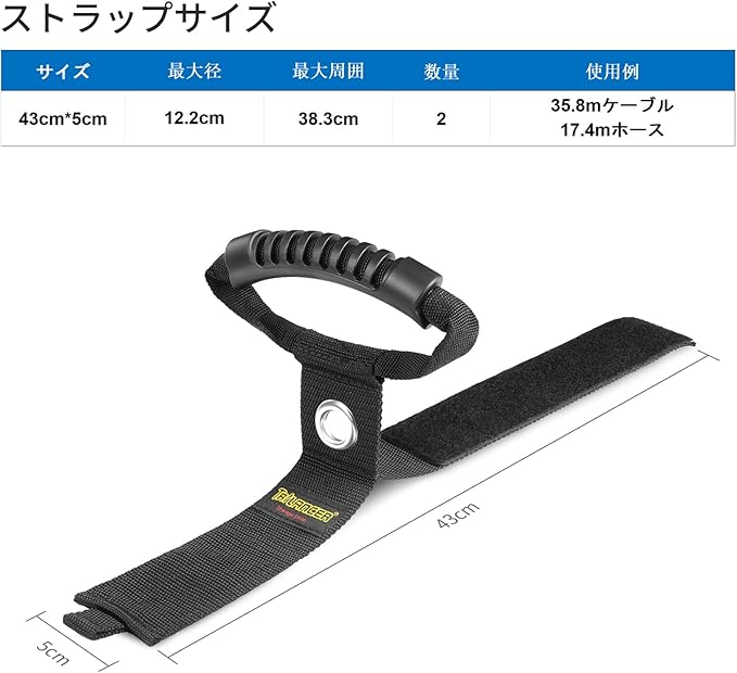 延長コード・ホースオーガナイザー(2パック)ガレージや作業場用ハンドル付き、43 cmの丈夫なマジック式キャリーストラップ、ハンガー、ケーブルオーガナイザー、プール&庭用ホース、ワイヤー、ケーブル向けハンガー