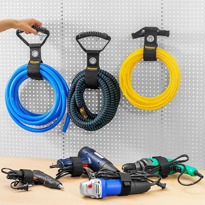 ✅【持ち運んで掛ける】- 便利なキャリーハンドル付きで、重たいケーブルやホースを簡単に運べます。収納のためには、ハンドルやハトメで壁のフックにきれいに掛けるだけです。