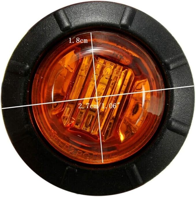 ・【レンズカラー】アンバー 【発光色】アンバー 【サイズ】約2.7cm/1.06 " (直径) 【配線】白線(-)黒線(+) 【動作電圧】12V 【仕様】防水・防塵