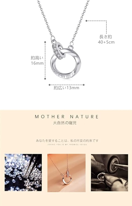 [Mieduaxy] ネックレス レディース 人気 メビウスネックレス ダブルリング/ハートの形 ファッションデザイン 最高級のキュービックジルコニア S925 ペンダント 金属アレルギー対応 クリスマス チタン 誕生日 プレゼント 女性 K18金 カップル 記念日 プレゼント Fall in Love/Ti Amo(愛してます イタリアの) レタリング