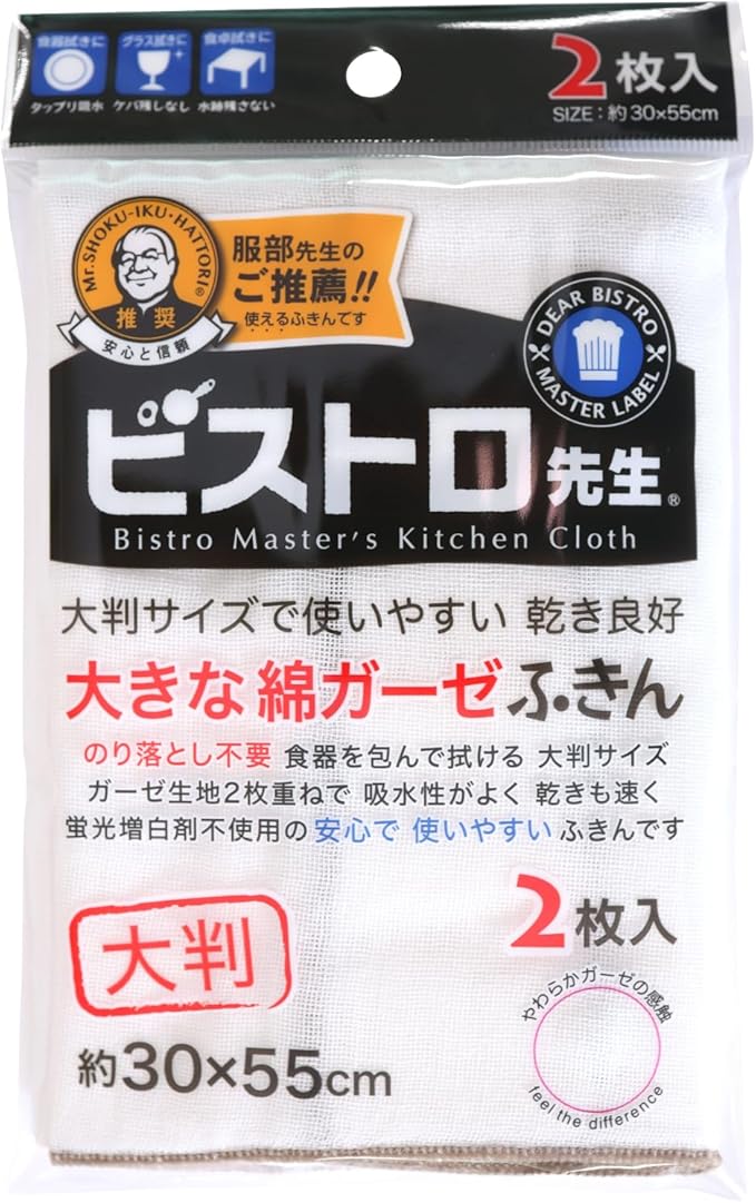 サンベルム(Sanbelm) 綿100% 大判 キッチンクロス 食器拭き ホワイト 30 55cm ビストロ先生 大きな綿ガーゼふきん 2枚入 K73700