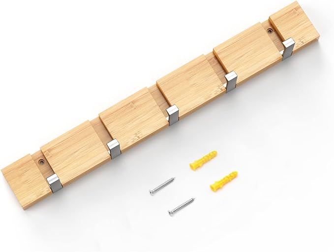 Anjuer ウォールハンガー 壁取り付け式コートラック 5連フック 壁掛けフック 収納家具 物干しハンガー 帽子・洋服・コート掛け 木製(銀フック折り畳み型)