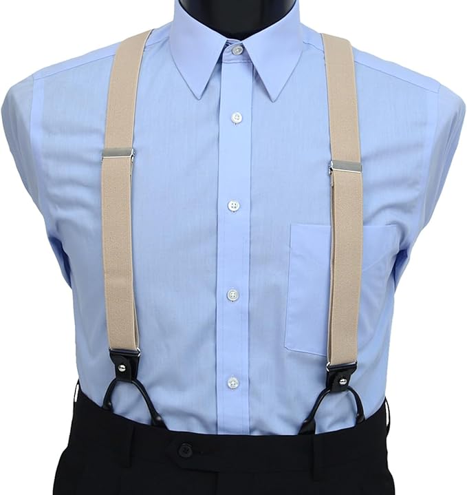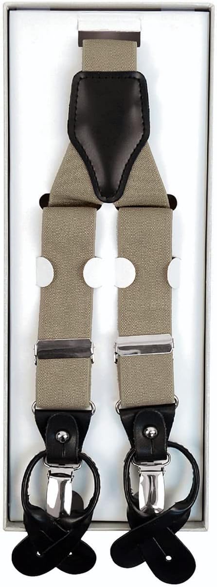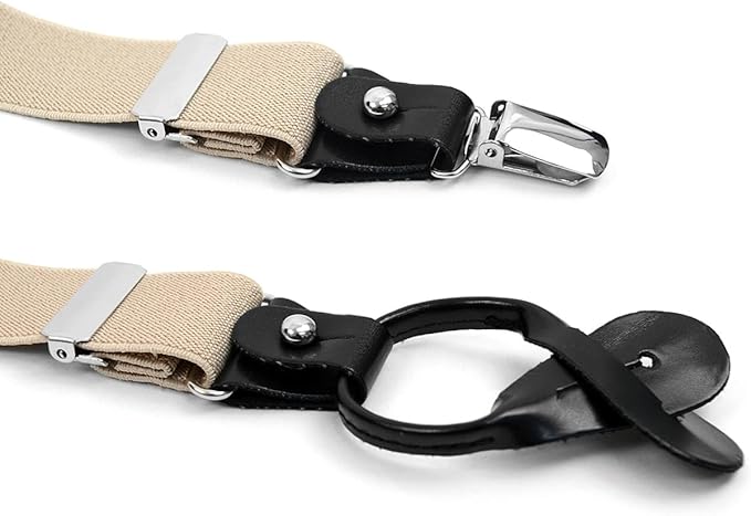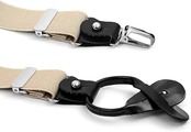 クリップでもボタンでも使用できる2WAYサスペンダー。 先端の革パーツを開閉し、クリップ、革ひもとパーツを付け替えることができます。 フォーマルシーンはもちろん、 ビジネス、普段用として幅広くご使用いただけます。 お好みのパンツに縫い付けて使用していただけるよう ボタンも6個付属しています。