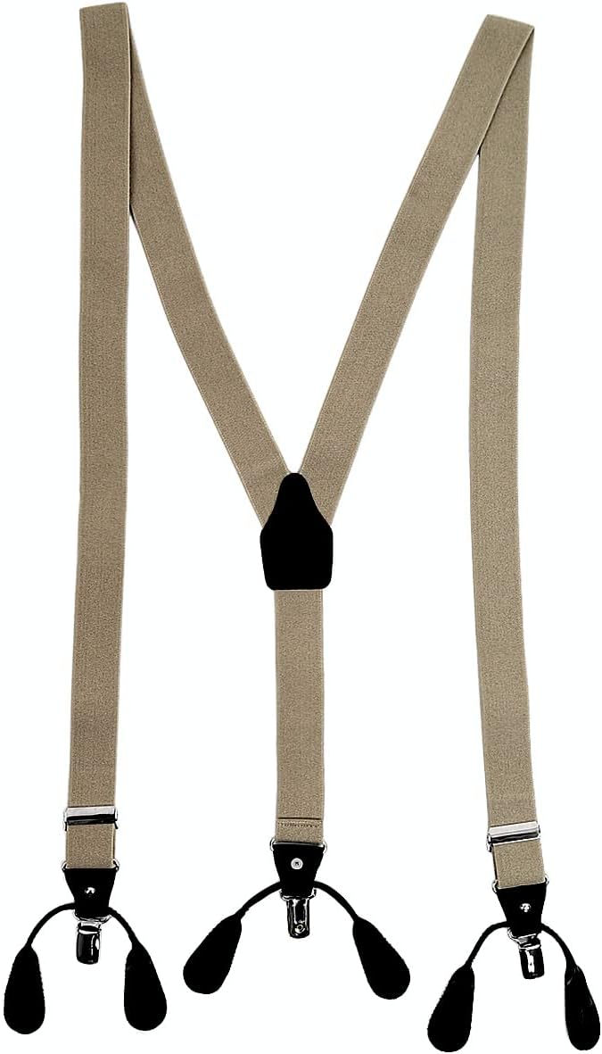 [Bowties.jp] クリップ ボタン 兼用 2WAYタイプ サスペンダー 無地 ネイビー バーガンディ ブラウン グレー カーキ レッド