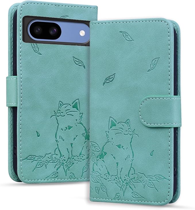 YIMASE 対応 Google Pixel 8A ケース 手帳型 かわいい猫 グーグルピクセル8a ケース 手帳型 Google Pixel 8A カバー pixel8a ケース 可愛い猫 googleピクセル8a ケース googlepixel8a ケース 指紋防止&落下保護 ピクセル8a ケース 手帳型 完璧なフィット感と操作性 耐衝撃 財布型 スタンド機能 ダークグリーン