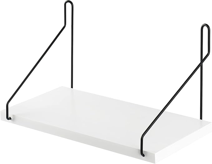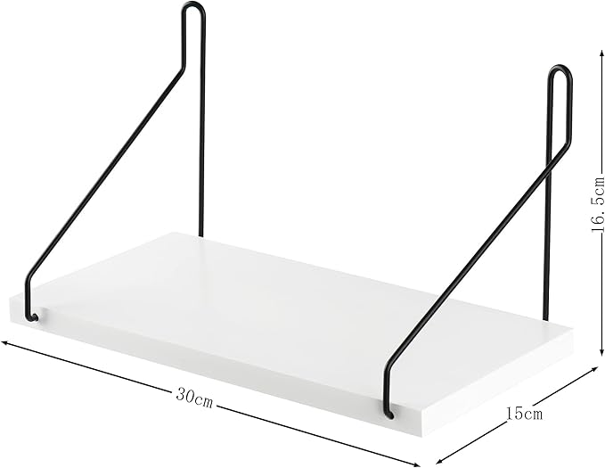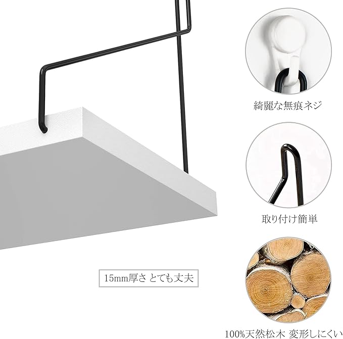 ウォールシェルフ 天然木 壁掛け棚 鉄製 ワイヤー壁棚 賃貸 飾り棚 壁面収納 無痕釘 ネジ 木製 (ホワイト, 30cm)