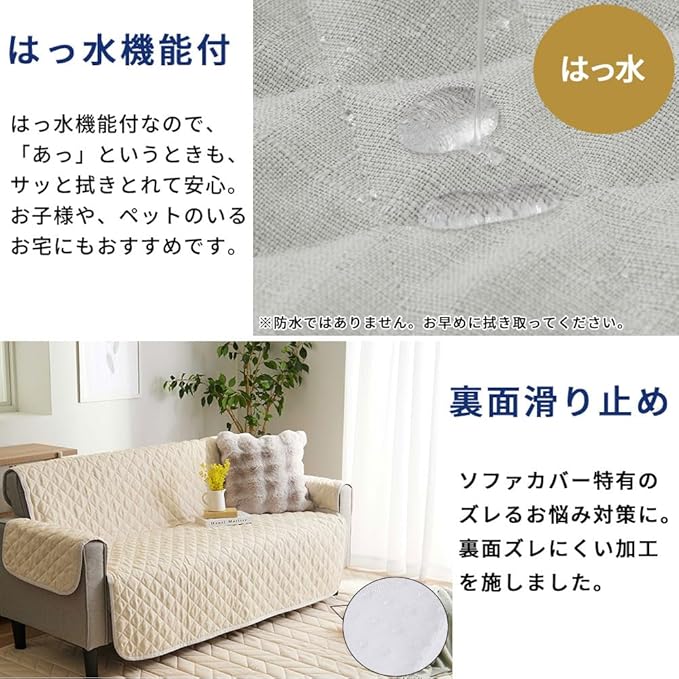 ベルーナ(BELLUNA) ソファーカバー 3人掛け 2人掛け 肘付き 肘なし はっ水 麻風 キルト かけるだけ 滑り止め付き 洗える さらさら オールシーズン(555530-003)