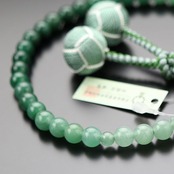 すべての宗派のお客様にお使い頂ける女性用のお数珠でございます。素材は、印度翡翠でございます。印度翡翠の、グリーンの濃淡をうまく利用し、美しいグラデーションになるよう、手間暇を惜しまず、手作業にて、ひと玉ひと玉並び揃えた、京職人こだわりの京念珠でございます。房は、正絹製で、丈夫で扱い易く、型崩れを起こさない小田巻梵天房にて、お仕立てさせていただきました。さらには、新しい2色仕様で、とてもお洒落な仕上がりとなっております。この他にも、グラデーション数珠、多数ご準備ございます。