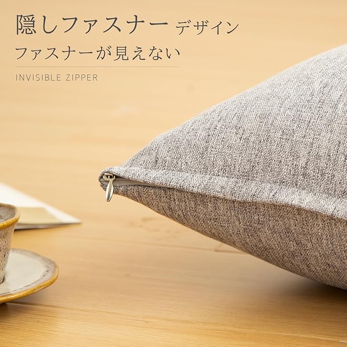 Haguko 座布団カバー 55x59 2枚セット ざぶとんかばー 銘仙判 北欧 おしゃれ 綿麻テクスチャー リネン風 ピーチスキン ソフトタッチ 装飾枕カバー ミストグレー