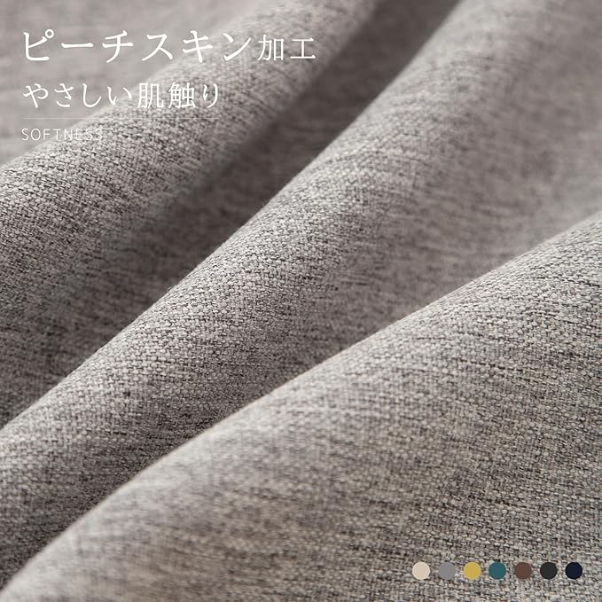 「素材」高品質なポリエステル100%。リネン風の見た目と高級感があり、ピーチスキン加工により手触りが非常に柔らかいです。抗菌、アレルギー防止機能を備え、高い吸水性と速乾性で、洗濯も簡単。環境に優しく、肌に触れても安心です。