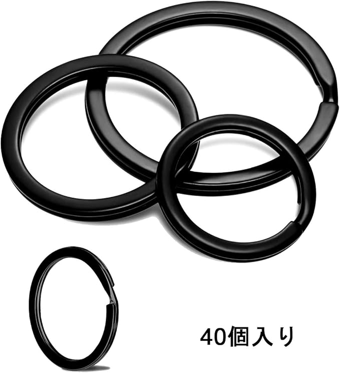[AMUU] 平キーリング 黒い 外径25mm 28mm 30mm 32mm 40個入(各サイズ10) キーリング リング ステンレスキーホルダー リングキーホルダー・キーリング キーホルダー 金具 黒い