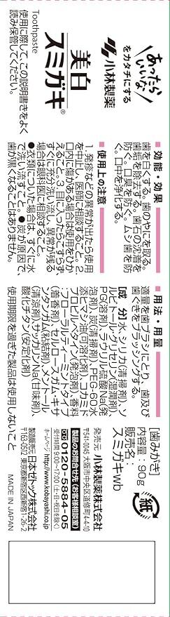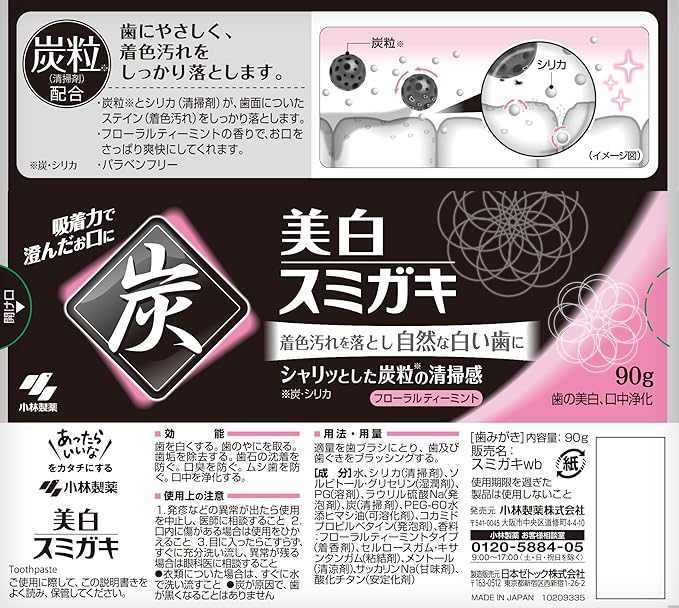 小林製薬 美白スミガキ 炭粒(炭・シリカ) 配合 歯を白くするハミガキ 90グラム (x 1)