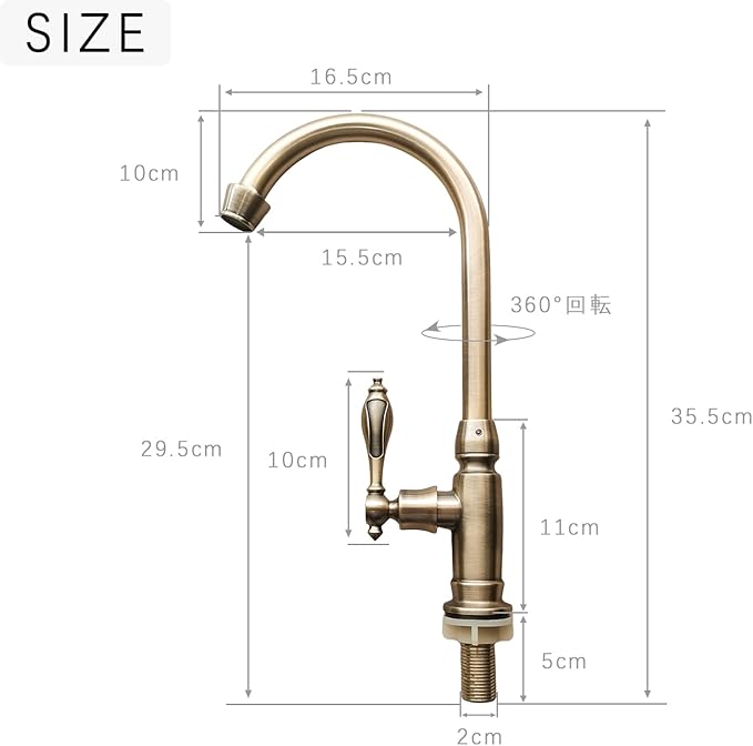 蛇口が360 回転しますので、とても使い勝手がいい単水栓です! アンティーク調の気品とレトロなデザインがオシャレで古風な風格がとても素敵なバスルーム・洗面用の単水栓です! ドッシリとした風格あるアンティーク調のデザイン、懐かしさとレトロな時間と空間を演出してくれます。