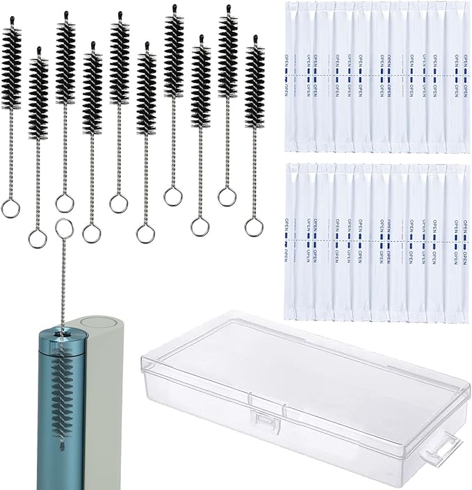 HOREJIA 対応glo(グロー)用 クリーニングブラシ 10本セット Glo Hyperにも対応用 加熱式タバコ用綿棒20本付き 独立包装 携帯便利 PP素材製の収納ケース付き (120mm)
