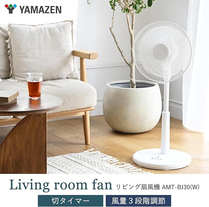 【限定商品】[山善] 扇風機 リビング 左右自動首振り 押しボタンスイッチ 風量3段階調節 切タイマー 換気 ホワイト AMT-BJ30(W)