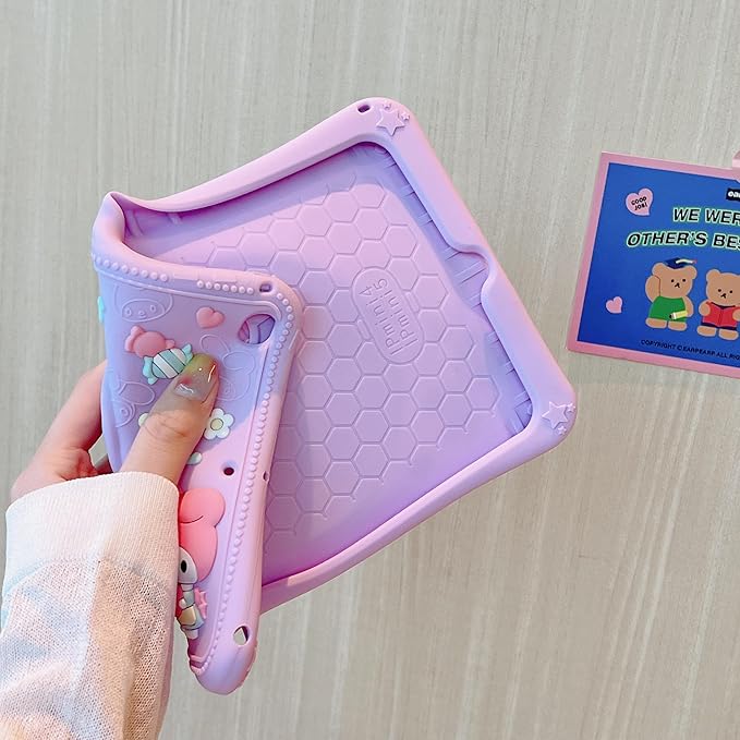 CrazyLemon 適用 iPad Air 11インチ 2024 ケース iPad Air 11 第6世代 専用 ケース 360度回転 リング付き 縦置き 横置き スタンド機能 肩掛け ストラップ 付き 可愛い うさぎ デザイン 薄型 軽量 パープル ソフト シリコーン アイパッド 保護 ケース カバー 耐衝撃 女性/女の子 大人/子供 人気
