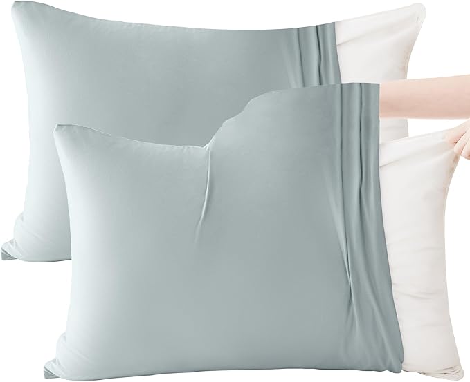 AYO 枕カバー 2枚セットピローケース まくらカバー 3Dストレッチ Tシャツ のびのび枕カバー 封筒式 おしゃれ オールシーズン 超吸水速乾 通気性 抗菌防臭 肌にやさしい 着脱簡単 (枕の43x63cmサイズに適用 グリーン)
