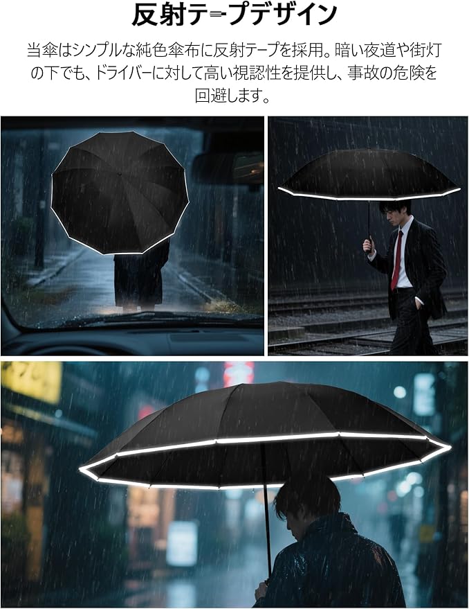 【12 本骨強靭耐強風設計】 柔軟性と高強度を兼ね備えた 12 本骨構造を採用し、折りたたみ傘 強風に強い性能を最大化!防食加工済みの丈夫なフレームは錆びにくく、激しい風雨にも折れず曲がらず、おりたたみ傘 頑丈かつ軽量丈夫折りたたみ傘として長期的な耐久性を誇ります。強風時に万一ひっくり返っても、風の流れを受け流す特殊設計により、閉じるだけで簡単に元の形に復元し、折りたたみ傘最強の耐圧性を発揮します。120cm の広い傘面で確実な遮蔽性を提供しながら、高強度素材による折り畳み傘 軽量 頑丈なバランスで持ち運びもストレスフリー。メンズ 折りたたみ傘 風に強いデザインに加え、紫外線カット機能付きの日傘 風に強い丈夫な日傘としても活用でき、日常通勤からアウトドアまで幅広い用途に対応する丈夫な折り畳み傘です。