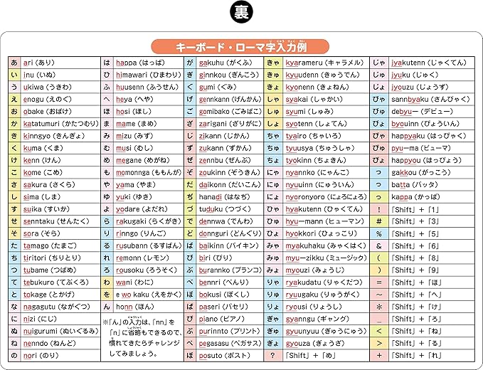 裏面には、分かりやすい小文字でのローマ字入力例も記載しました。