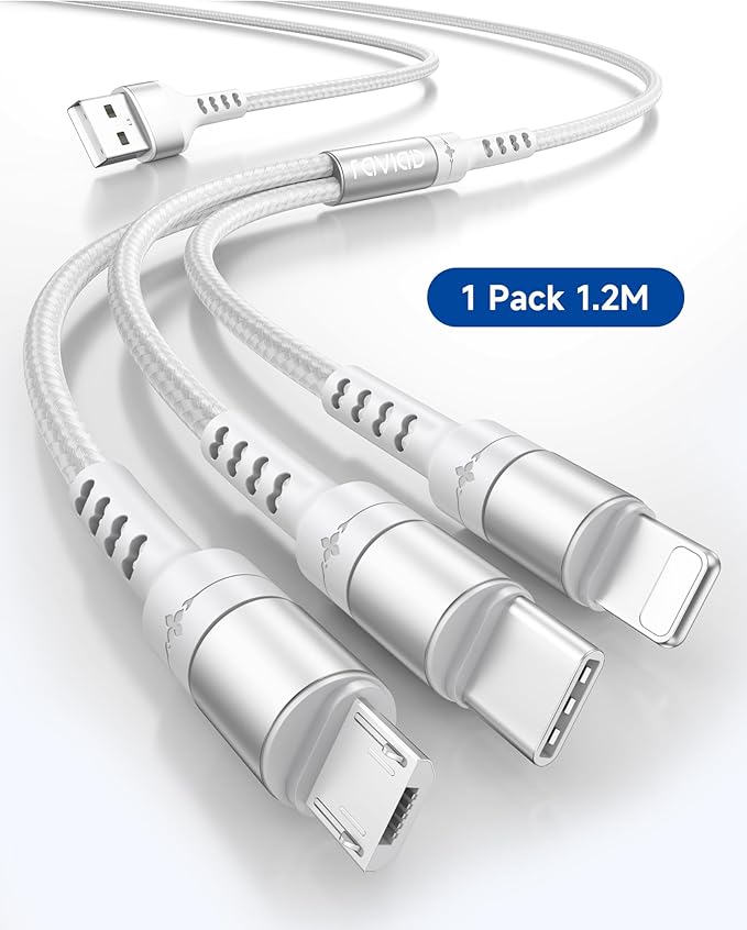 RAVIAD 3in1 充電ケーブル【1.2M 2本セット】USB ケーブル 3A 急速充電 3イン1 充電コード USB Type C ケーブル Micro USB ケーブル Phone 充電ケーブル 3台同時給電可能 Phone Android タイプC Phone 14 13 12 Galaxy S24 S23 S22 21 S20 Kindle 等多機種対応 - シルバー