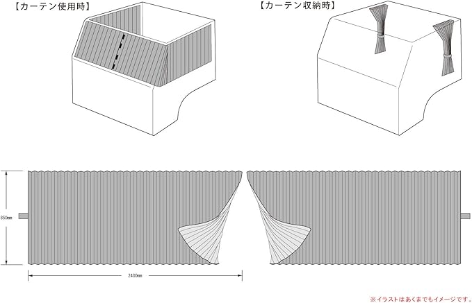 雅 彩-サイ- 仮眠カーテン (2400 850) ブラック KC-SIBK