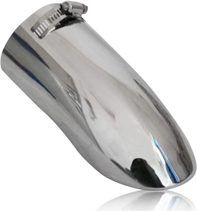 車用マフラーカッター下向き:車のマフラーの先端部分に付ける汎用タイプの下向き、車用カスタムパーツです。 斜めカットのマフラーカッター下向きは排気方向の変更や、輸入車の排気改良や車検改善にオススメです。 シンプルな汎用シングルタイプですので、愛車の後ろ姿がスタイリッシュになること間違いなし。