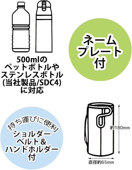 スケーター(Skater) ショルダーベルト & ハンドホルダー付 マグボトルカバー 水筒ケース 水筒カバー