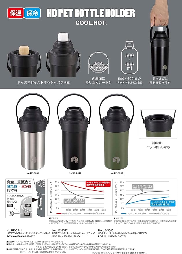 限定商品限定商品 ペットボトルホルダー ペットボトルクーラー HD ステンレスペットボトルホルダー 真空断熱 保温 保冷 500ml 600ml 兼用 持ち手付 UE-3541/UE-3542/UE-3543/UY-7063
