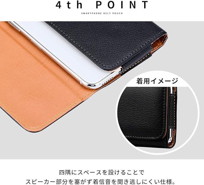 四隅にスペースを設けることでスピーカー部分を塞がず着信音を聞き逃しにくい仕様。