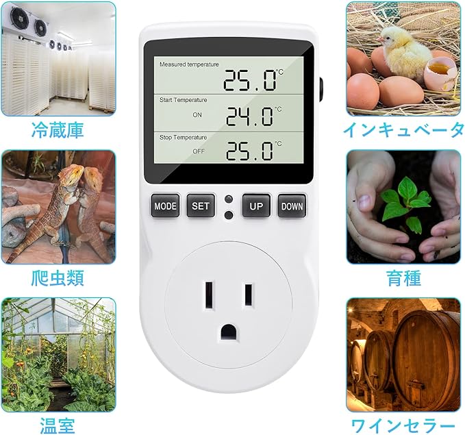 温度制御ソケット、DiyStudio デジタル プログラミング サーモスタット 水槽ヒーターの使用 水槽 サーモスタット デジタル温度制御スイッチカウントダウン ,水族館、爬虫類冷蔵庫、温室種子発芽摂取タイマー, ℃/℉温度 コントローラー