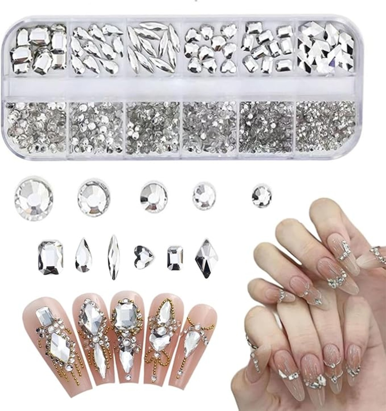 Doyime ラインストーン ネイルパーツ (12種類) ネイル ストーン ネイル用ストーン 立体 平底 ネイルアートパーツ ネイルストーン クリスタル デコ用 ひし形 ハート 長方形 丸