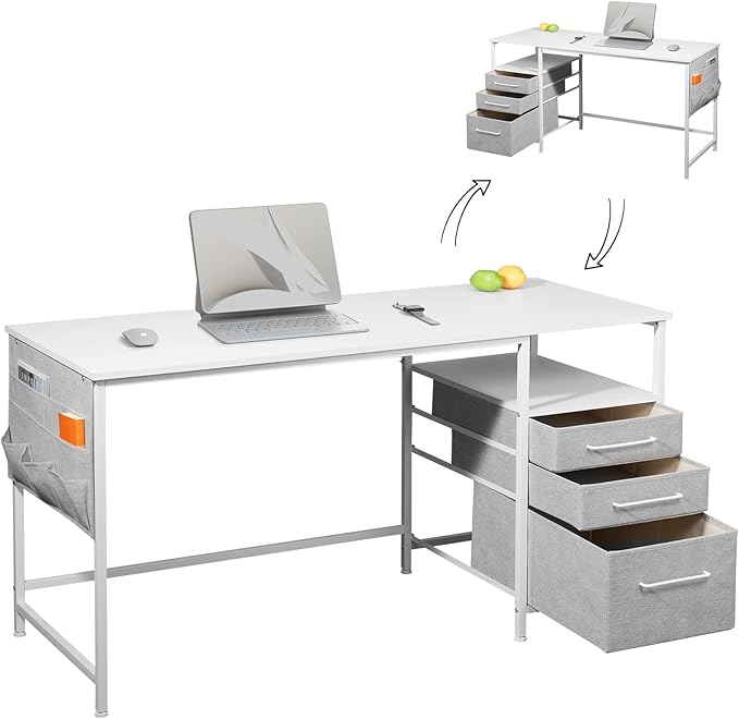 Maihail 机 pcデスク パソコンデスク つくえ ラック付きデスク 幅140cm 奥行60cm 引き出し付き 在宅ワーク デスク オフィスデスク 勉強机 学習机 左右入替可 テレワーク 白い