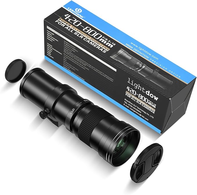 Lightdow 望遠ズームレンズ 420-800mm f/8.3-16 for キヤノンEF/EF-S レンズfor Canon EOS Kiss X10i X10/250D X9i X9 X8i X7i X6i X5 X4 X3 X2 X90 X70 90D 80D 70D 60D Rebel SL3一眼レフレンズ